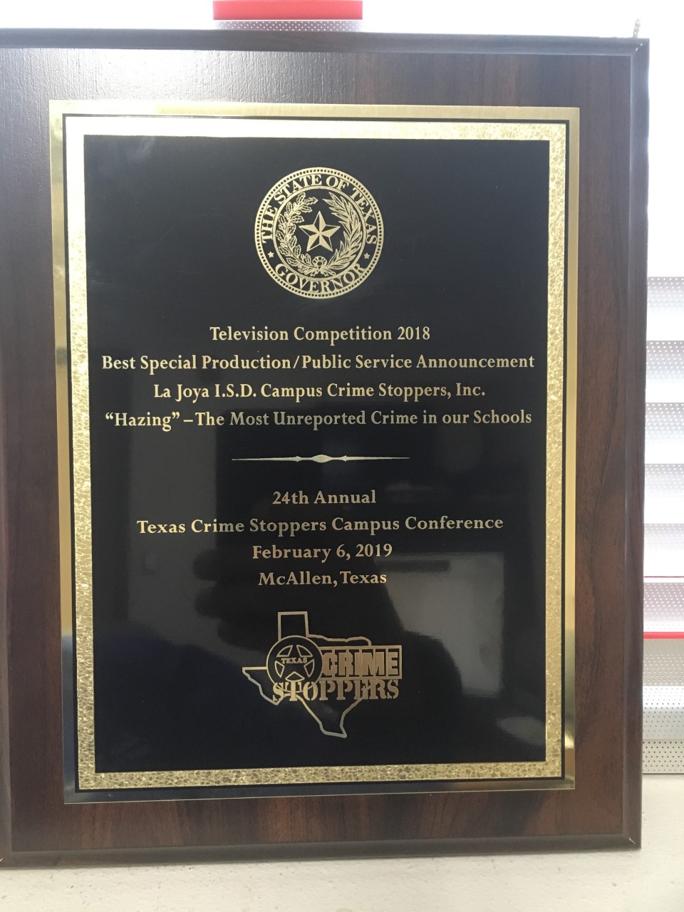 February 7, 2019 Television Competition 2018: Best Special Production/Public Service Announcement; La Joya ISD Campus Crime Stoppers, Inc